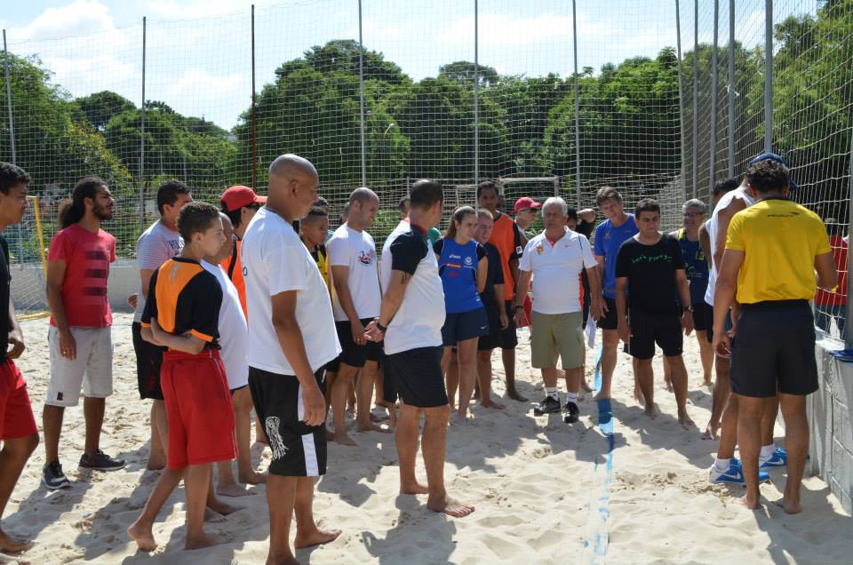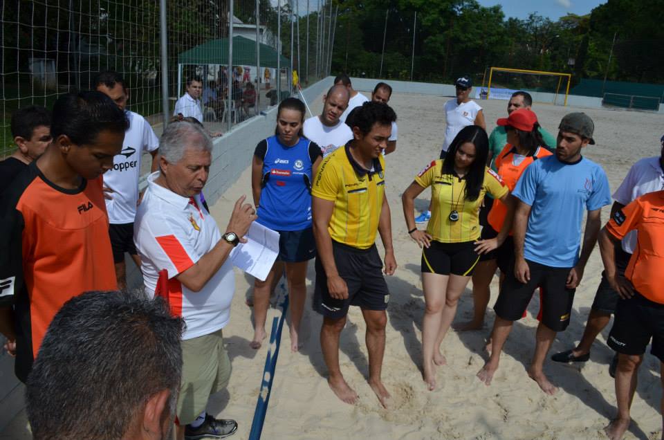 Neste domingo (8) foi realizada a aula prática - e última - do curso de Árbitros de Beach Soccer, onde os alunos tiveram a chance de sentir na pele a responsabilidade de comandar uma partida de beach soccer.